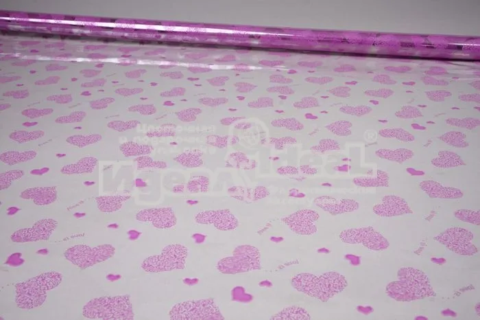 Пленка в рулоне цветная 70см х 0,24кг. Сердца Love is (сиреневый)
